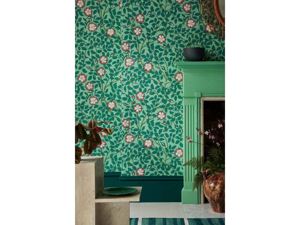 Briar Rose je klasická tapeta s opakujícím se vzorem. Nejde o panelový mural - jednotlivé role na sebe plynule navazují a vzor je navržen tak, aby fungoval rovnoměrně na celé ploše stěny. Vzor se opakuje po 65 cm.