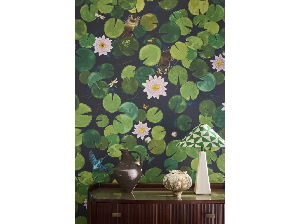 Tapeta zachycuje pohled shora na listy leknínů, jemně rozložené v pravidelném, ale živém rastru. Výsledkem je klidný botanický motiv, který do interiéru přináší pocit rovnováhy, lehkosti a přirozeného řádu. Lily Pads patří mezi nejuniverzálnější vzory kolekce In the Garden a velmi dobře funguje jak v tradičních, tak v modernějších interiérech.