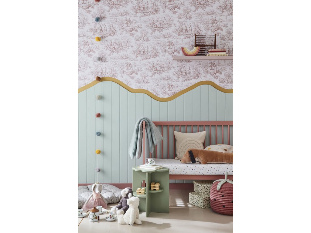 Lovers’ Toile je klasická tapeta s opakujícím se vzorem. Nejedná se o panelový mural - jednotlivé role na sebe plynule navazují a vzor je navržen pro rovnoměrné pokrytí celé plochy stěny. Vzor se opakuje po 52 cm.