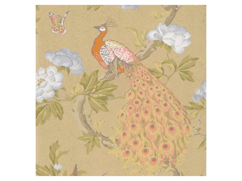 Tento křiklavý, zářivý vzor páva je krásným příkladem tisku tapet z konce 19. století. Byla nalezena na stěně ve vstupní hale v Erddigu ve Walesu, byla zavěšena v 70. letech 19. století a má malířský povrch tradičního čínského hedvábí. Námět zobrazující pávy sedící na větvích, doplněné květinami, listy a ptáky, je typický pro tapety a látky vyráběné k uspokojení zájmu západní elity o čínský design. Barevné provedení v osmi živých barvách, včetně elegantních světlých a odvážnějších tmavých podkladů, a dokonce i třpytivé zlaté.