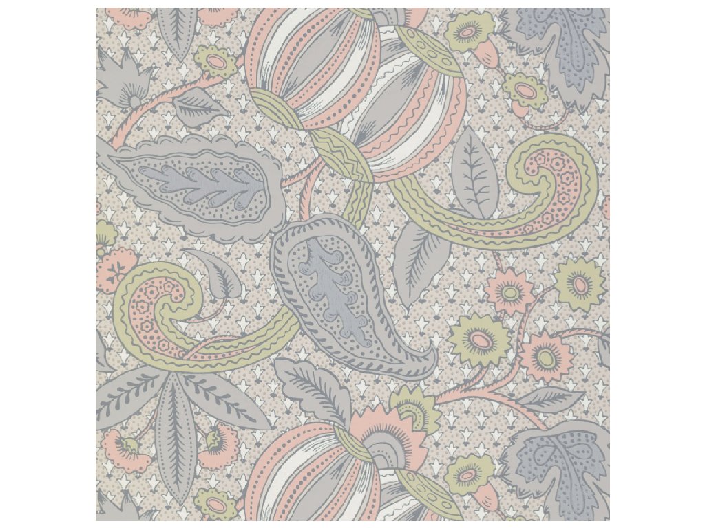 Tento vzácný a velmi raný nález barokního vzoru byl objeven organizací National Trust a skrýval se pod nástěnnými tapiseriemi v Erddigu ve Walesu. Blokový tisk na deskách z ručního papíru, které byly přibity přímo na stěnu (nikoli přilepeny), odhalil nejstarší ověřené daňové razítko na zadní straně. Barevný žlutý originál byl zredukován na jednu ze čtyř tónových barev. Další tři barevné varianty přinášejí všestranné moderní využití tohoto živého paisley vzoru.