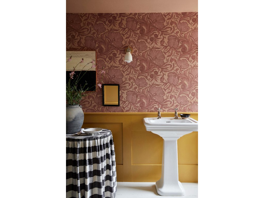 Vzor je vyveden v pěti tónovaných barevných variantách, z nichž každá pracuje s výrazným podkladem a podtrhuje ornamentální charakter motivu. Poppy Trail působí dekorativně, bohatě a je ideální volbou pro interiéry, kde má tapeta sehrát výraznou vizuální roli.