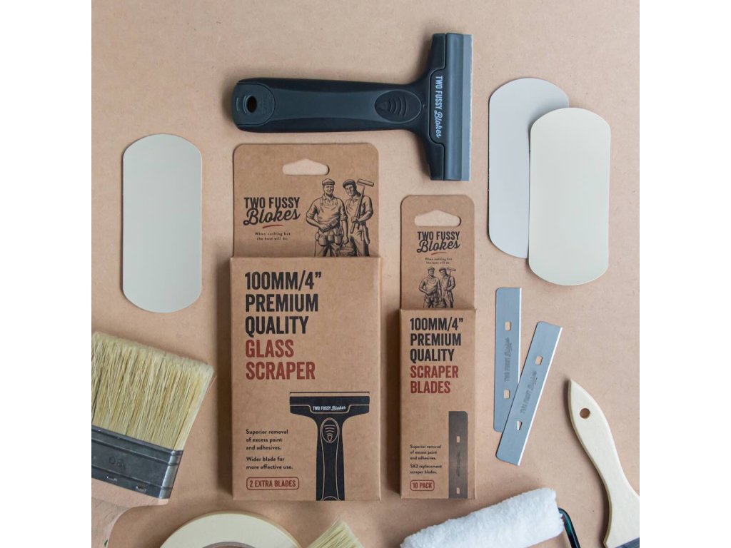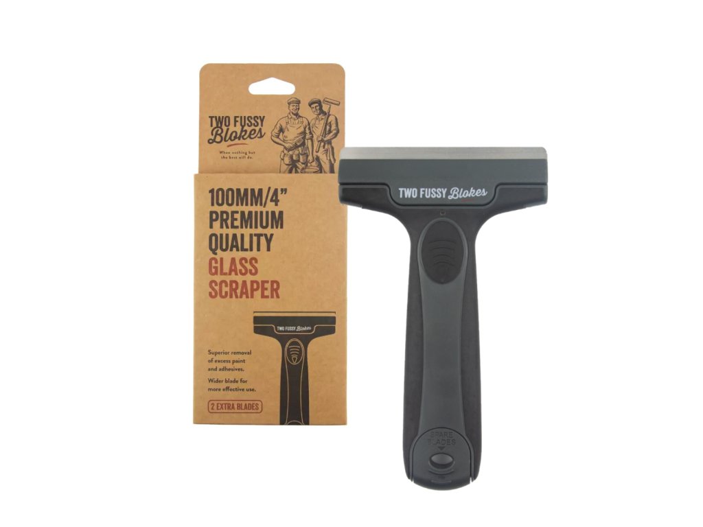 Škrabka Two Fussy Blokes je navržená pro rychlé, přesné a bezpečné čištění skleněných ploch. Ostrý břit si snadno poradí se zbytky barvy, lepidel nebo jiných nečistot, aniž by poškodil povrch.