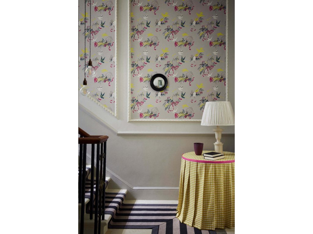 Volières je klasická tapeta s opakujícím se vzorem. Nejde o panelový mural - jednotlivé role na sebe plynule navazují a vzor je navržen tak, aby fungoval rovnoměrně na celé ploše stěny.
